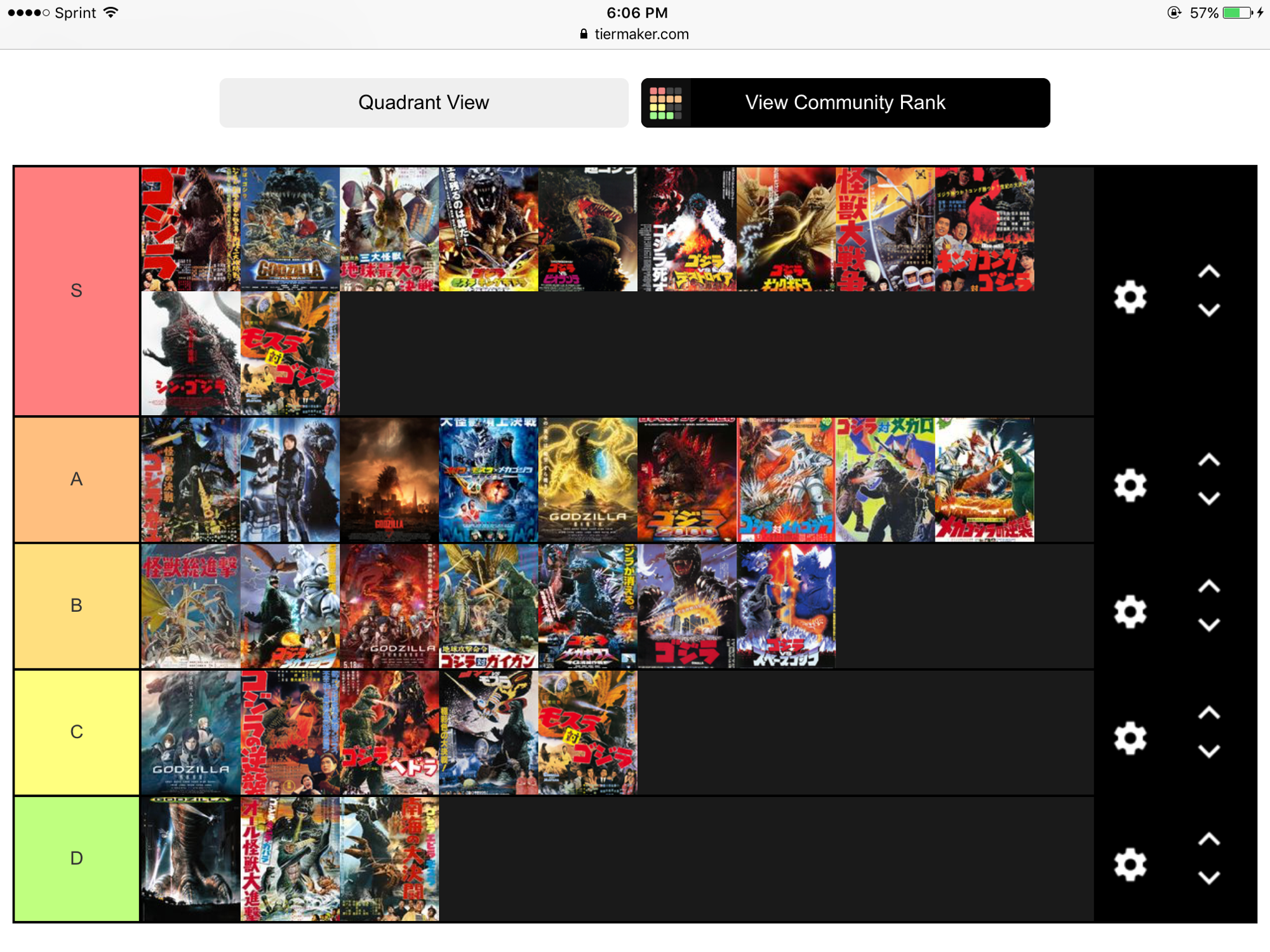 Godzilla movies tier list. Board index films general toho films. There are 35 released godzilla movies and one in post production. This is a list of all monsters that have appeared in the godzilla franchise organized by the medium they appeared in using order of introduction plus the thing they were introduced in and not which thing they originally came from. My tier list of all godzilla movies. Post by tyrantlizardking sat aug 17 2019 405 pm. Gojira 1954 godzilla mothra and king ghidorah.