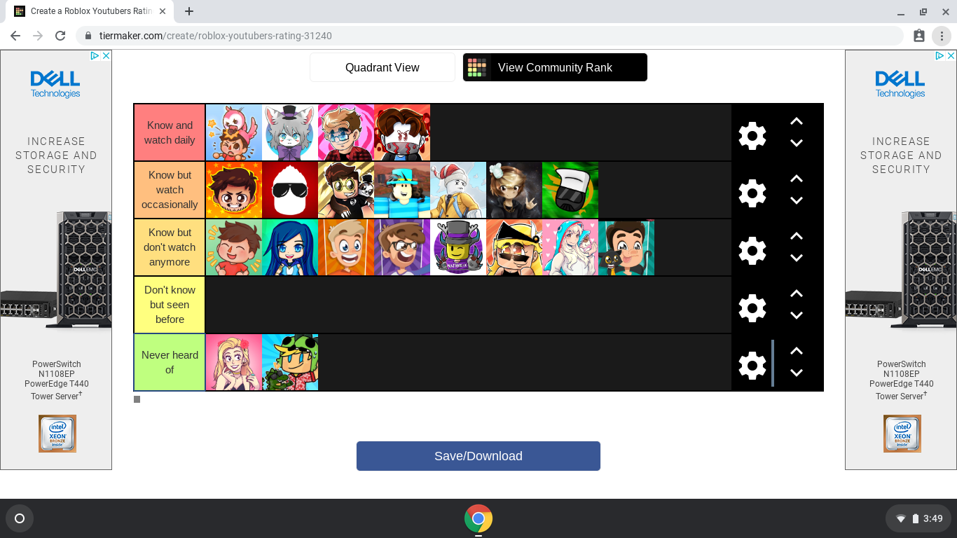 Roblox youtuber tier list.