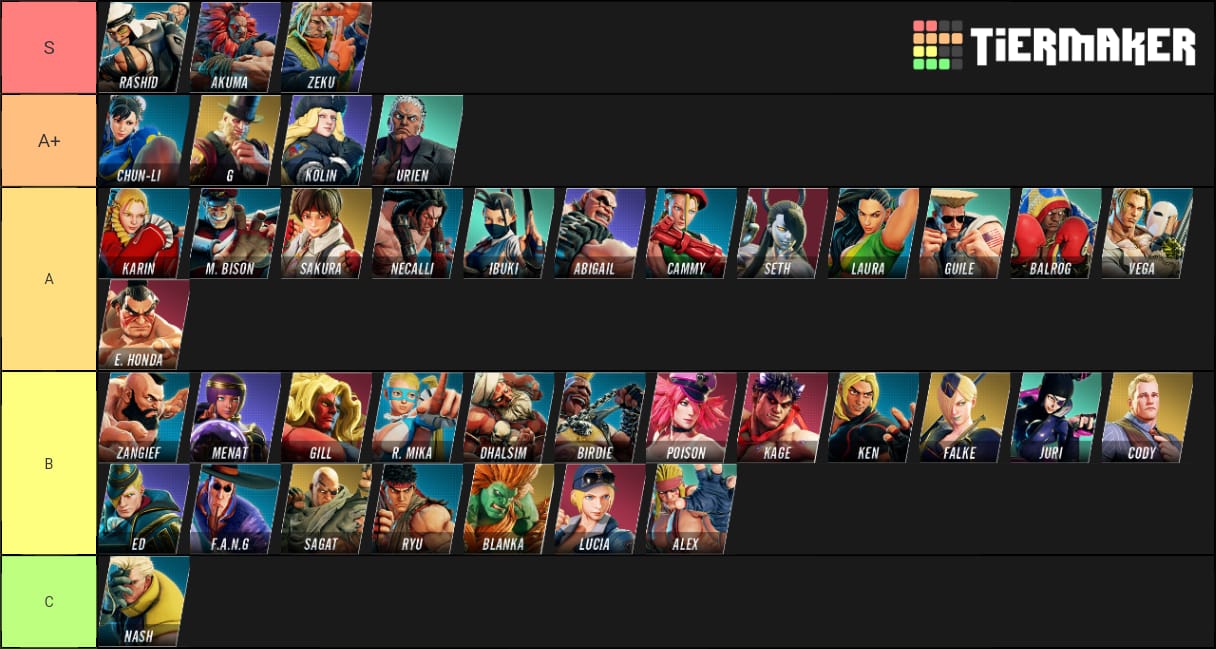 Champion edition season 5 tier list this is probably the most balanced sfv has ever been. In the list theres no surprise to anyone that rashid is s tier here.