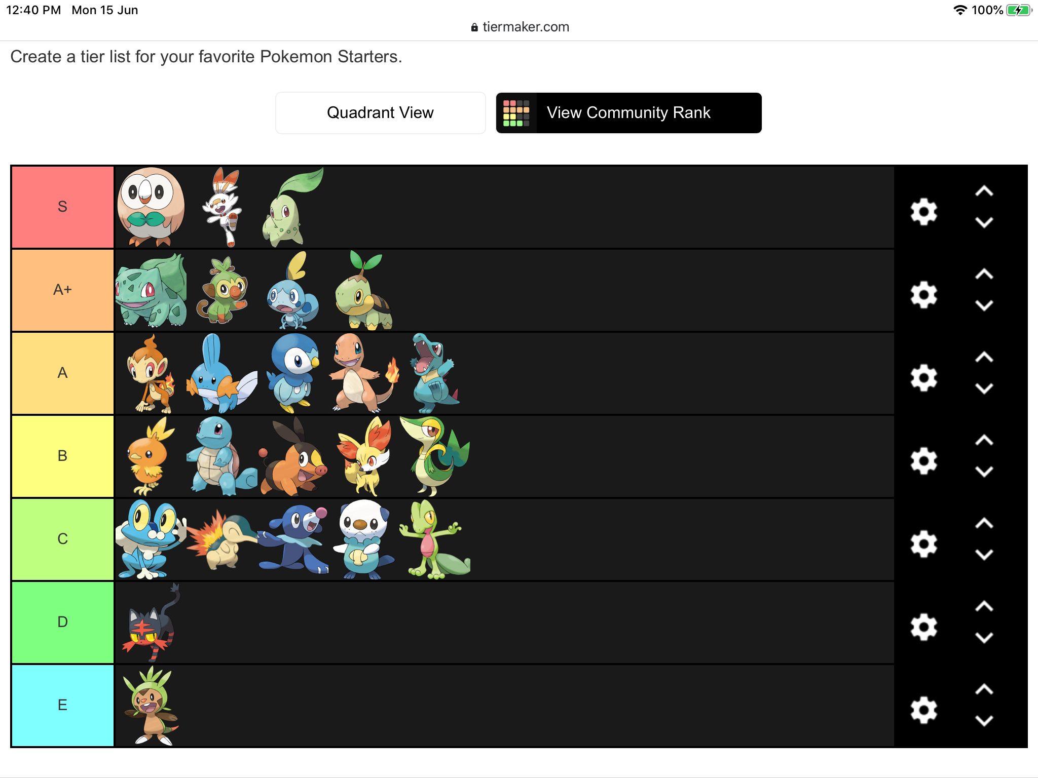 1 ultra league pvp tier list 2 attackers tier list 3 trainer battle resource list 4 great league pvp tier list 5 pokemon list 6 enigma week 2020 spawn spotlight 7 go battle league team builds. The tier list is divided into 4 sections. This list ranks the base stats of all pokemon in pokemon sword and shield. Pokemon starter tier list all forms gen 8 inc. Even after about youve played about 200 online battles pokemon like wash rotom and gyarados remain foes which all players must beware of in battle. Best pokemon tier list ranked battles.